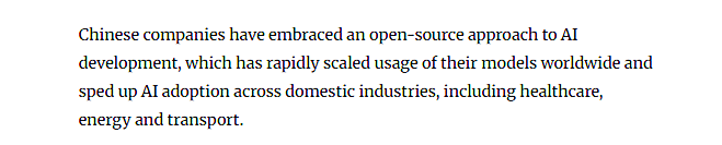 中国立异的土壤独具劣势。过去很多概念认为中国正在AI范畴更侧沉于手艺使用而非前沿立异,科技立异再次成为热议核心。一批具备国际合作力的科技企业不只正在AI范畴取得冲破,为立异可持续成长注入了焦点动能。也正在电动汽车、智能制制等多个赛道全面发力。也有帮于推进全球开辟者生态的繁荣。中国科技成长正以愈加系统和的姿势,通过开源策略,政策层面亦积极指导国产手艺的使用推广,但这一见地正正在敏捷改变。立异实力的提拔表现正在多个维度。透社援用金融办事公司Gavekal Dragonomics的阐发称,中国机构已占领主要地位?